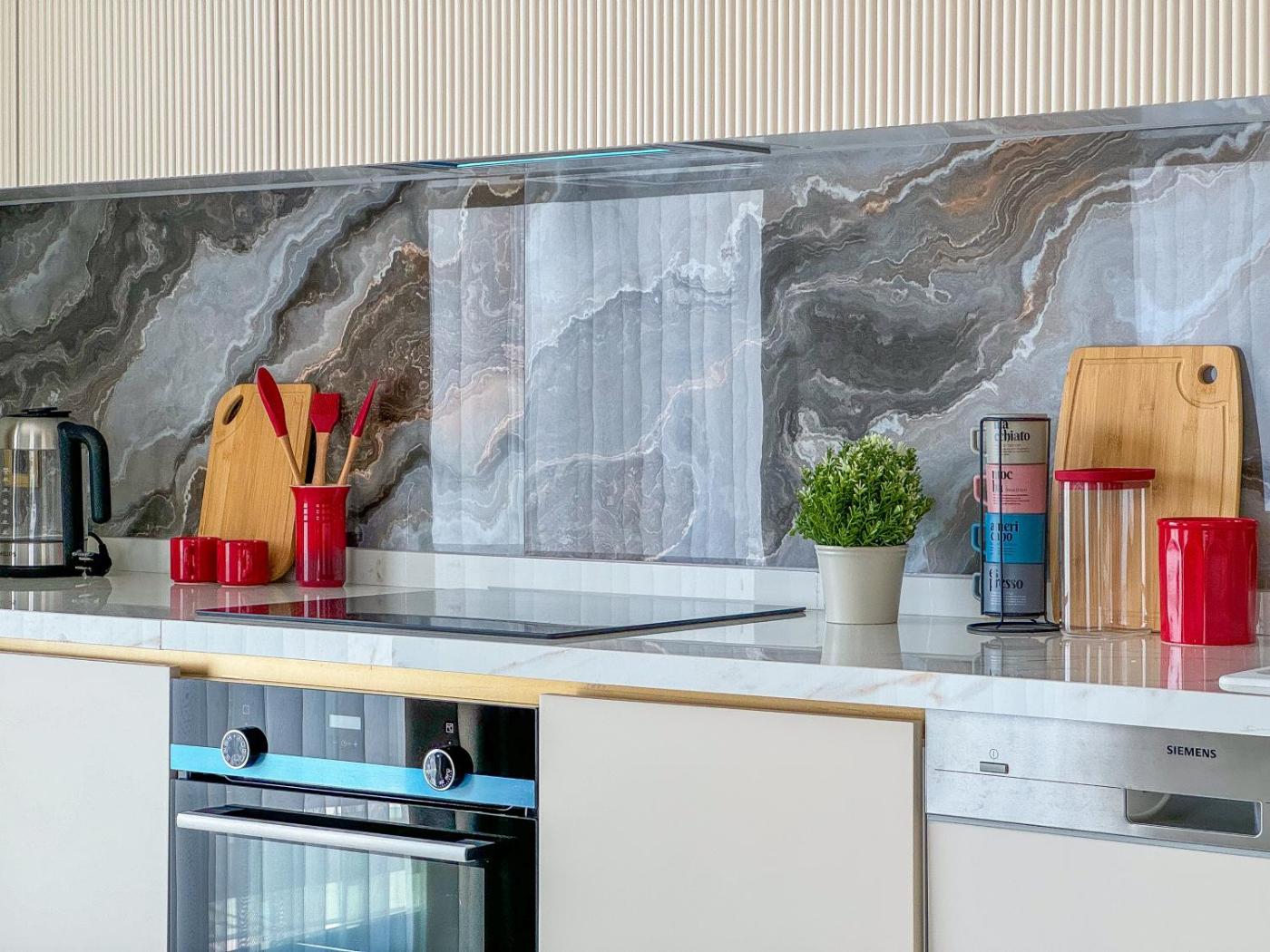 Apartment. Guests will have a special experience as this apartment offers a private pool and a sauna. This spacious apartment comprises 1 living room, 4 separate bedrooms and 1 bathroom with a shower and free toiletries. In the well-fitted kitchen, guests will find a stovetop, a refrigerator, a dishwasher and kitchenware. The air-conditioned apartment provides a flat-screen TV, a washing machine, soundproof walls, a tea and coffee maker as well as sea views. The unit offers 6 beds.
